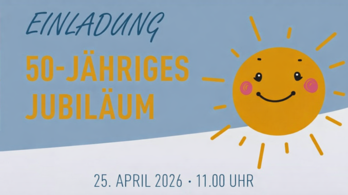 Hützemert. Anlässlich ihres 50-jährigen Bestehens lädt der Kindergarten Sonnenschein Hützemert zu einem großen Jubiläumsfest ein. Die Feier findet am 25. April 2026 um 11:00 Uhr auf dem Kindergartengelände statt und beginnt mit einem Wortgottesdienst.
