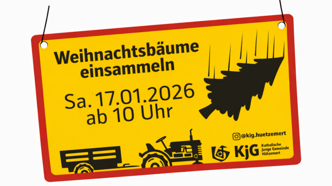 Hützemert. Auch in diesem Jahr übernehmen die Jugendlichen der KJG Hützemert das Einsammeln der ausgedienten Weihnachtsbäume. Am Samstag, den 17. Januar, können alle, die ihren Baum abholen lassen möchten, diesen bis spätestens 10:00 Uhr gut sichtbar an die Straße legen. Wichtig: Bitte den Baum vorher vollständig abschmücken, damit die Abholung reibungslos funktioniert.